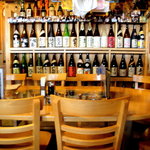 おおきな大きな木の下で - 店内には焼酎の瓶がずらりと、地震のときは大丈夫だったんでしょうか